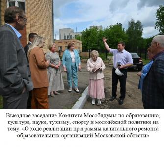 3 июня прошло выездное заседание Комитета Мособлдумы по образованию, культуре, науке, туризму, спорту и молодёжной политике на тему: «О ходе реализации программы капитального ремонта образовательных организаций Московской области», в работе которого приняла участие депутат Московской областной Думы Никитас Т.Е.