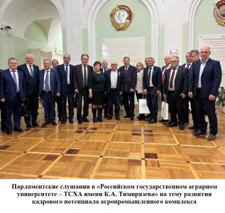 27 января под руководством заместителя Председателя ЦК КПРФ, Председателя Комитета Государственной Думы по аграрным вопросам, академика РАН Владимира Кашина и при участии Министра сельского хозяйства РФ Оксаны Лут состоялись парламентские слушания в «Российском государственном аграрном университете – ТСХА имени К.А. Тимирязева». Темой мероприятия стало обсуждение развития кадрового потенциала агропромышленного комплекса.