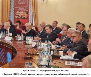 19 августа, в Москве, в Колонном зале Дома Союзов состоялся круглый стол, организованный фракцией КПРФ в Государственной Думе, на тему: «Фракция КПРФ в борьбе за целостность страны, против либеральной «пятой колонны»!», приуроченный событиям августа 1991 года.