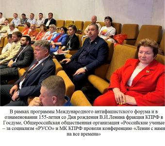 В апреле в Москве прошел организованный КПРФ второй Международный антифашистский форум. На антифашистский форум прибыли гости из Европы, Азии, Африки, Латинской Америки — 164 делегации из 91 страны мира. В форуме принял участие руководитель фракции КПРФ в Московской областной Думе Александр Наумов. Делегаты единодушно поддержали нашу решительную борьбу с нацизмом и бандеровщиной. Это событие сопровождало проведение крупных межрегиональных антифашистских акций по всей России. И вновь доказало: нашими главными союзниками и сегодня, в это тревожное время, остаются левые партии и государства, идущие по пути социализма.