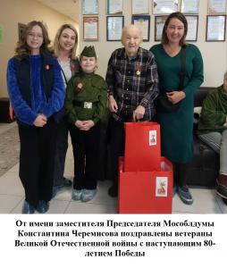 Кроме того депутаты выступают в школах, навещают и поздравляют с 80-летием Победы ветеранов ВОВ, тружеников тыла, узников фашизма, жителей блокадного Ленинграда и детей войны.