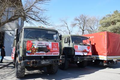 21 февраля из Дагестана в зону проведения СВО отправился очередной гуманитарный груз, состоящий из трех военных грузовиков, в рамках 150-го гуманитарного праздничного конвоя КПРФ. Груз сформирован с участием региональных отделений СКФО с учётом потребностей бойцов.