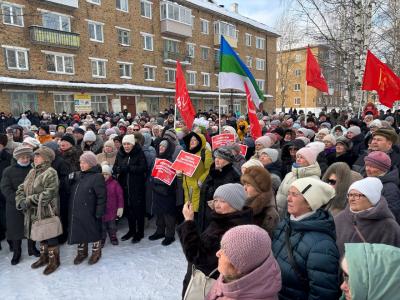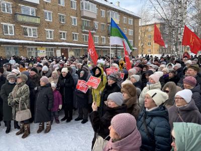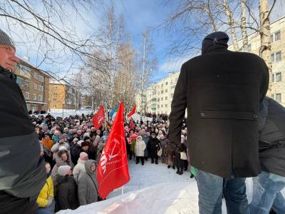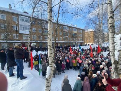 В поселке Жешарт сегодня состоялся масштабный митинг, организованный усть-вымскими коммунистами в защиту трудовых прав работников градообразующего предприятия – Жешартского ЛПК. Несмотря на достаточно холодную погоду и противодействие местных властей, на площадке у домов №8 и №9 по улице Тургенева собралось, по разным оценкам, от 600 до 700 человек.
