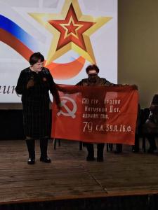 Кульминацией поздравления стал торжественный момент: Наталья Тимофеевна вручила коллективу кинотеатра копию Знамени Победы. Алое знамя займёт почётное место в «Нерче», напоминая посетителям о великом подвиге народа.