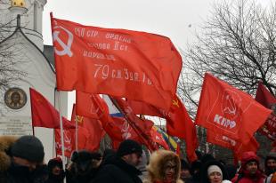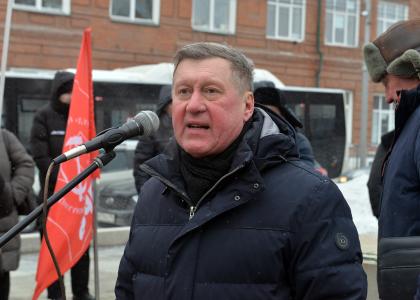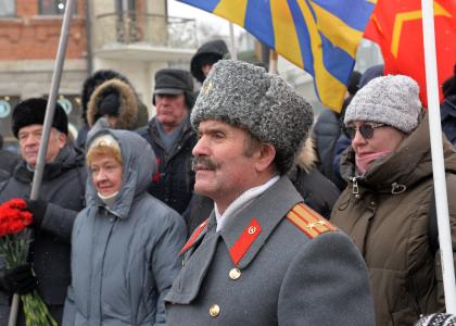 В честь 108-й годовщины со дня создания Красной Армии и Военно-морского флота Новосибирское областное отделение КПРФ провело шествие и митинг возле бюста трижды Героя Советского Союза, Маршала авиации Александра Покрышкина.