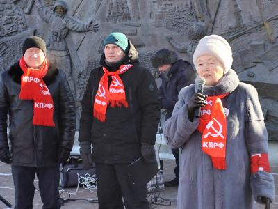 Открыла митинг лидер тюменских коммунистов Тамара Казанцева. В своем выступлении она подчеркнула историческую роль Красной Армии, которая была несокрушимой и легендарной, одержала победу над фашизмом в Великой Отечественной войне и сегодня вновь противостоит ему в ходе специальной военной операции на Украине. Тамара Николаевна пожелала бойцам, находящимся на передовой, скорейшего возвращения домой с Победой.