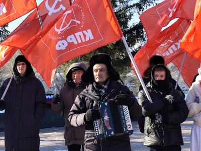 Патриотическую атмосферу митинга поддерживали выступления «золотого голоса КПРФ» Виктора Ильиных, исполнившего патриотические песни, а также ведущий Александр Кулаков, который сопровождал мероприятие историческими вставками.