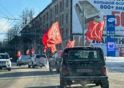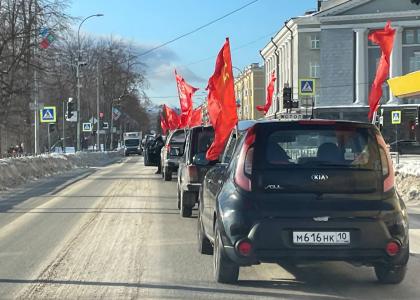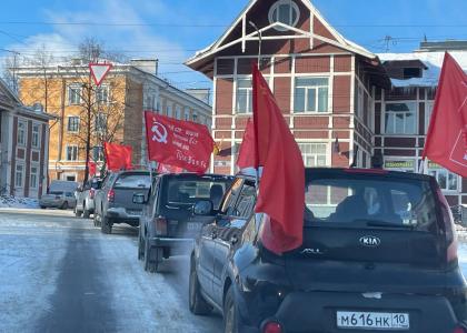 Представители КПРФ и лево-патриотических сил в Петрозаводске провели торжественное возложение цветов в честь Дня Советской армии и Военно-морского флота, а также автопробег по улицам столицы Карелии.