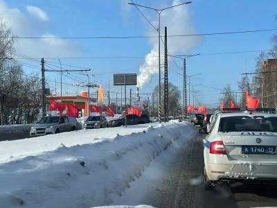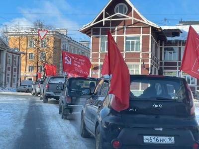 Представители КПРФ и лево-патриотических сил в Петрозаводске провели торжественное возложение цветов в честь Дня Советской армии и Военно-морского флота, а также автопробег по улицам столицы Карелии.