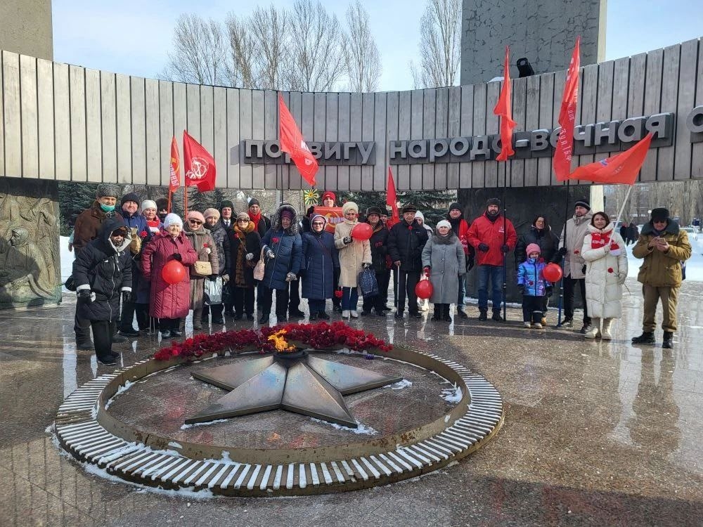 В Самаре коммунисты Безымянки провели автопробег, посвящённый 108-й годовщине образования Рабоче-крестьянской Красной армии и традиционно возложили цветы к Вечному огню.