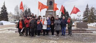 В день 108-ой годовщины со дня создания Рабоче-Крестьянской Красной Армии и Военно-Морского Флота коммунисты Центрального и Комсомольского района провели мероприятие с традиционным возложением цветов к Обелиску Славы на площади Свободы.