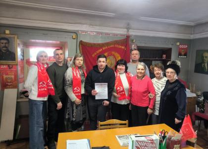 Сызранские коммунисты, в преддверии праздника, провели общепартийное собрание, а также вручили благодарственное письмо ветерану СВО Дмитрию Бабкину. Ерина Марина Анатольевна, как руководитель региональной организации "Дети войны", рассказала об очередном внесенным фракцией КПРФ в Госдуме законопроекте о детях войны, который парламентское большинство не поддержало. Завершилось мероприятие возложением цветов к Вечному огню.