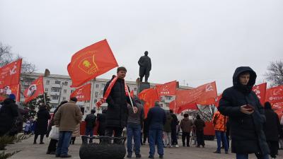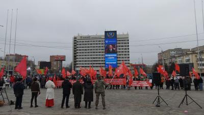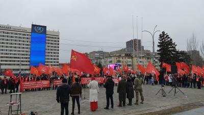 23 февраля, в день 108-й годовщины, рожденной Октябрем Рабоче-Крестьянской Красной Армии и Военно-морского флота и в поддержку СВО на площади Ленина Ростовский-на-Дону горком КПРФ провел праздничный митинг-концерт.