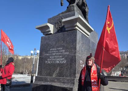 Следующий этап памятного шествия прошёл у памятника Маршалу Советского Союза К. К. Рокоссовскому. Перед собравшимися обратился руководитель фракции КПРФ в Народном Хурале В. А. Малышенко. Он напомнил, что победы Красной Армии — это не только результат военного таланта полководцев, но и воплощение идей социальной справедливости: солдаты защищали не абстрактное отечество, а завоевания Октябрьской революции — право на труд, образование, достойную жизнь и равенство всех народов многонациональной страны. Возлагая цветы к монументу, участники отдали дань уважения выдающемуся военачальнику и всему советскому народу, сплочённому общими идеалами.