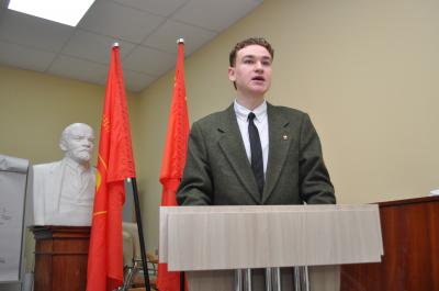 Доктор экономических наук Вячеслав Волков посвятил свой доклад героям 1918 года, а также истории праздника. Председатель Сталинского комитета Ленинграда Иван Метелица рассмотрел роль Сталина как продолжателя дела Ленина. Известный публицист Владимир Соловейчик осветил такой важный исторический документ как переписка Сталина с Кагановичем. Секретарь горкома комсомола, политолог Владислав Карлов раскритиковал лживые рассуждения о том, что Сталин якобы отошел от марксизма, приведя в пример массовое издание и переиздание трудов марксистских теоретиков в годы Великой Отечественной войны. Заместитель директора Центра исследований политических проблем, ответственный секретарь научно-экспертного совета по развитию марксистско-ленинской идеологии при горкоме КПРФ Максим Лагутин рассказал о международной политике при Сталине. Завершилась работа выступлением комсомольца Ивана Чикаловца, который напомнил про разницу между социалистами и анархистами.