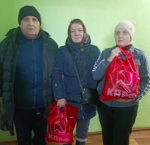 Коммунисты вместе с активными помощниками и сторонниками сразу же стали готовить продукты к раздаче – фасовать в красные пакеты с логотипом КПРФ. И 25-26 февраля пакеты с гуманитарными продуктами в первую очередь получили беженцы из практически полностью сгоревших сёл – Хоромного и Новых Юрковичей, которые сейчас живут в п. Климово в съёмном жилье.
