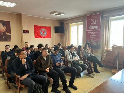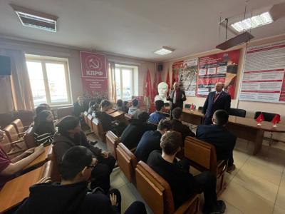С самого порога ребята погрузились в увлекательную беседу. Первый секретарь Краевого комитета КПРФ, депутат Законодательного собрания Забайкалья Юрий Гайдук рассказал о деятельности, идеологии и планах, включив школьников в живой разговор.