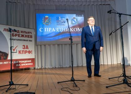 Первый секретарь Курского ОК КПРФ, депутат Государственной Думы ФС РФ, председатель ЦКРК КПРФ Н.Н. Иванов принял участие в торжественном собрании - концерте в г. Щигры, посвященном 120-летию Л.И. Брежнева.