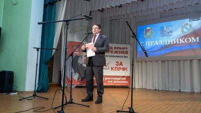 Первый секретарь Курского ОК КПРФ, депутат Государственной Думы ФС РФ, председатель ЦКРК КПРФ Н.Н. Иванов принял участие в торжественном собрании - концерте в г. Щигры, посвященном 120-летию Л.И. Брежнева.