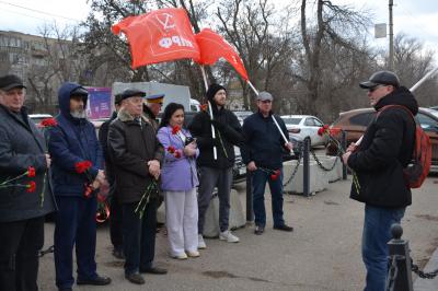 У памятника выступили первый секретарь Астраханского обкома КПРФ С.В. Севастьянов, секретарь обкома А.М. Токарев, председатель регионального отделения Союза советских офицеров А.Н. Кочков.