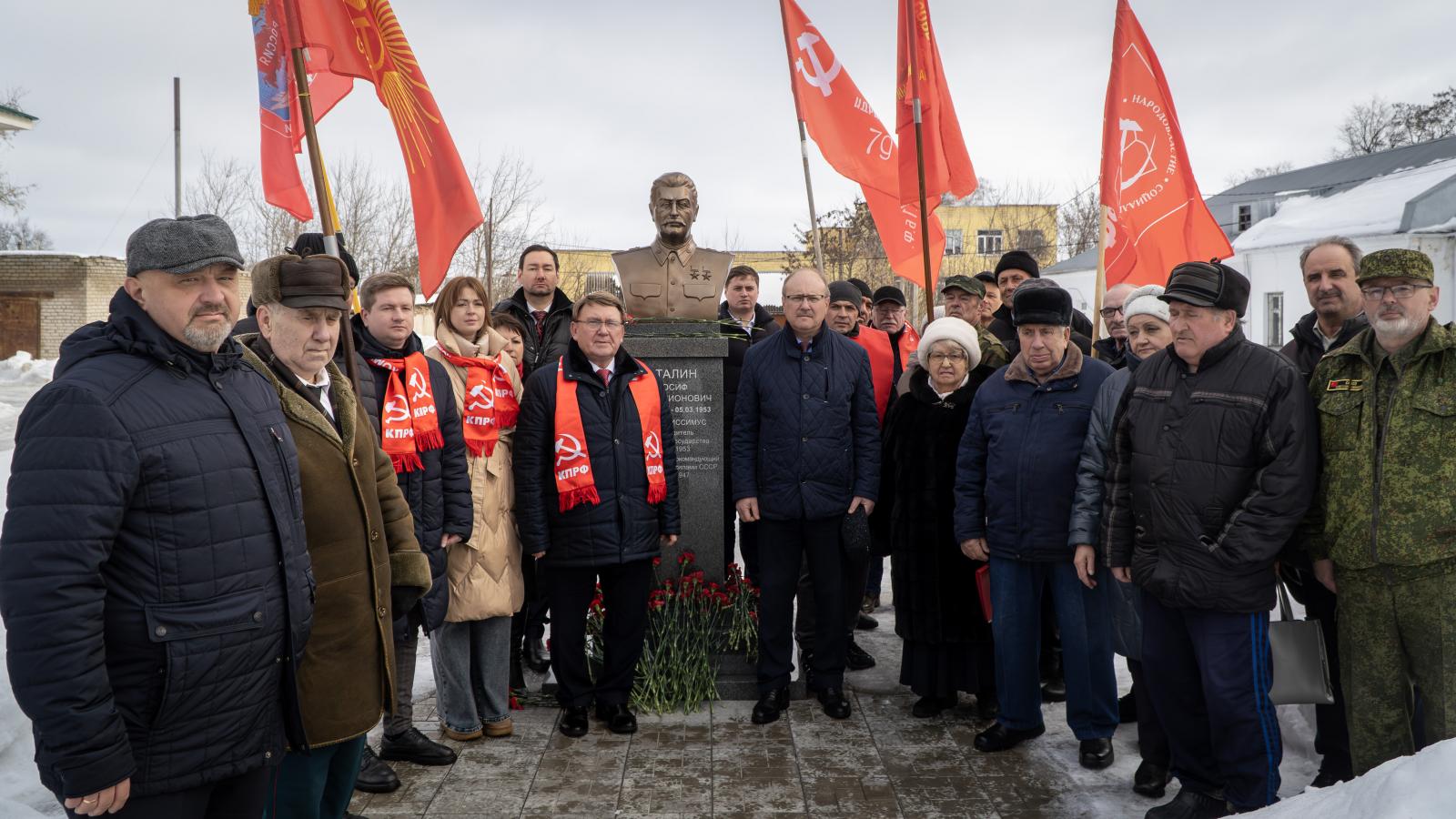 Затем секретари обкомов КПРФ, партийный и комсомольский актив возложили цветы к бюсту И.В. Сталина.