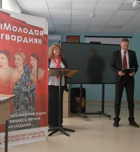 Депутат Государственной Думы Сергей Гаврилов говорил о проекте «Подвиг народа», геноциде мирного населения на территории Белгородской и Воронежской областей, о том, как простые люди сопротивлялись фашистам, провёл параллели подвигов молодых земляков с подвигом молодогвардейцев Краснодона.