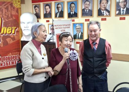 Произведения о любви, блестяще исполненные членом контрольно-ревизионной комиссии Якутского горкома КПРФ Анастасией Петровой, до глубины души затронули собравшихся. С сольными песнями также выступили руководители Якутского отделения женского движения «Надежда России» Саргылана Гоголева и Альбина Иванова, заслуженный экономист РСФСР Анна Кондратьева, старшая пионервожатая Якутской республиканской пионерской организации Людмила Оконешникова, активный участник художественной самодеятельности Светлана Сивцева.