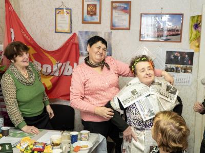Поскольку мероприятие проходило накануне празднования международного женского дня, то гости прибыли не с пустыми руками, а со сладкими подарками в ярких пакетах с символикой КПРФ.