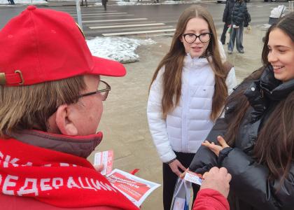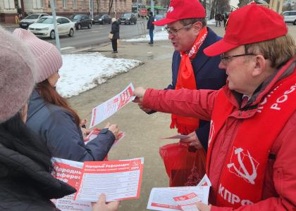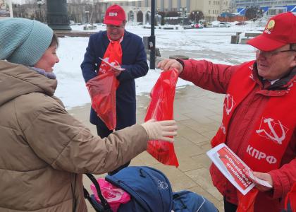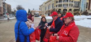 Первый секретарь Курского ОК КПРФ, депутат Государственной Думы ФС РФ председатель ЦКРК КПРФ Н.Н. Иванов с товарищами на улицах областного центра поздравляли курянок с 8 Марта.
