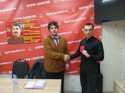 Началось мероприятие с приятного момента - торжественного вручения комсомольского билета новобранцу саратовского комсомола.