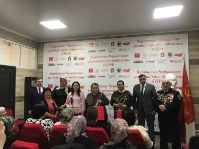 Награды вручали Кемал Бытдаев, член ЦК КПРФ, первый секретарь рескома КПРФ, Муратхан Михайлович, председатель регионального отделения ВЖС «Надежда России», Магомет Урусов, член республиканского Совета Союза советских офицеров. От имени Анатолия Бифова, депутата фракции КПРФ Госдумы РФ поздравлял женщин и вручал подарки его помощник Аслан Каскулов.