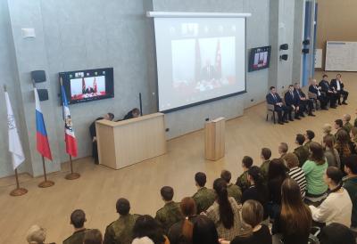 13 марта в Новгородском государственном университете (НовГУ) состоялась патриотическая встреча студентов и преподавателей с Героями Российской Федерации. На открытии по видеосвязи выступил Председатель ЦК КПРФ, Руководитель фракции КПРФ в Госдуме, Герой труда Российской Федерации Г.А. Зюганов. В мероприятии, которое приурочено ко Дню рождения выдающегося советского педагога А.С. Макаренко, приняло участие 500 человек. Ведущим был депутат-коммунист Госдумы от Новгородской области О.А. Лебедев.