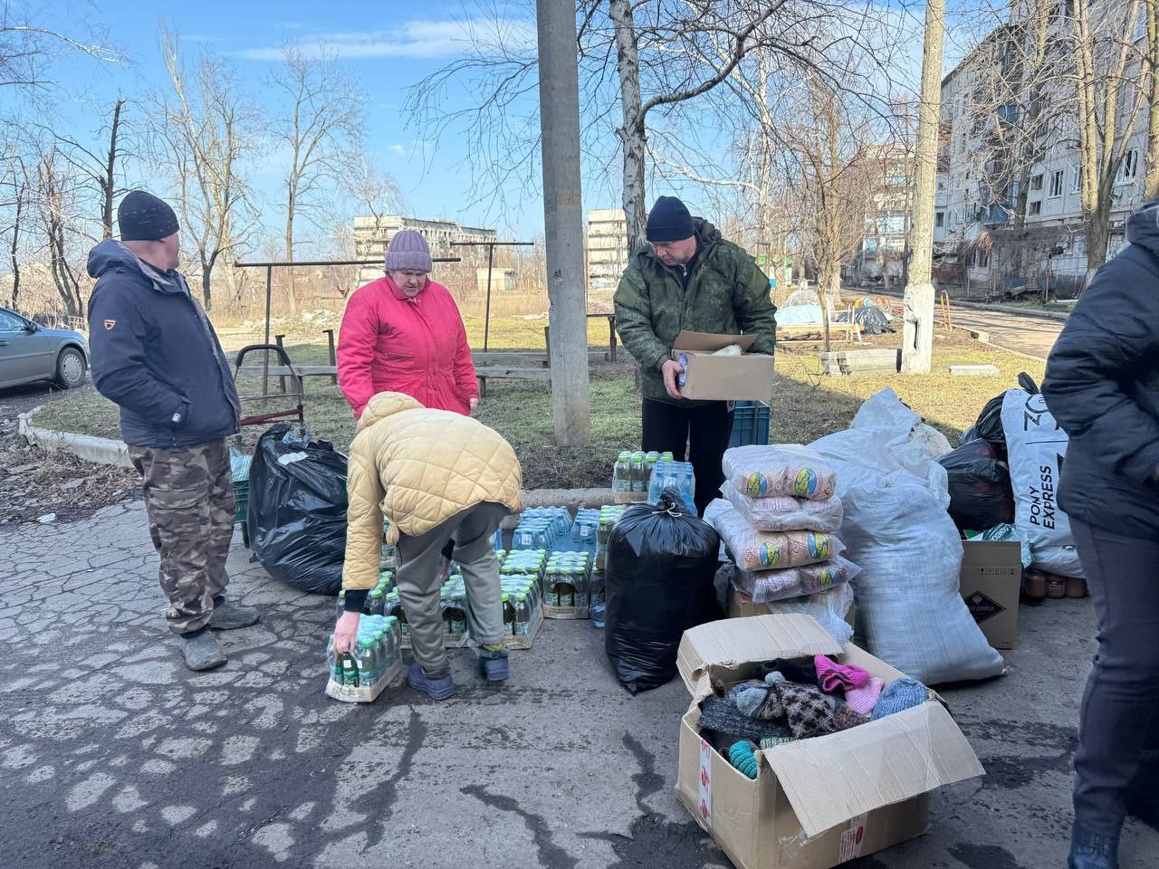 Коммунисты привезли жителям города продукты питания, теплые вещи, одеяла, воду, напитки, кондитерские изделия, крупы и предметы первой необходимости — все то, что сейчас жизненно важно для людей, оказавшихся в тяжелой ситуации.