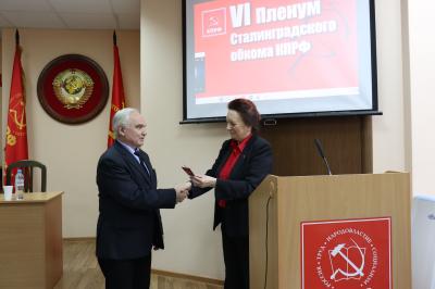 Предваряя работу Пленума, в торжественной обстановке были вручены партбилеты десяти вновь принятым коммунистам из 8-ми районных комитетов, а также партийные награды активистам областного комитета КПРФ.