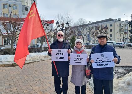 19 марта в Тамбове коммунисты под руководством секретаря обкома А.П. Веселовского провели акцию под лозунгом «СССР – наша Родина, которую мы обязательно возродим!»