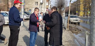Прохожие с интересом брали газеты и календарики, общались с коммунистами. Многие останавливались, ставили подписи и голосовали по вопросам Народного референдума.