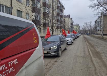 Старт автопробегу был дан от площади Мира. Автоколонна под красными флагами КПРФ под одобрительные гудки встречных машин в сопровождении маршевых песен советских композиторов проследовала по проспекту Мира, а далее по улицам 9 Мая, Металлургов, пл. Франценюка. По большей части это – район промышленной зоны и окраина города. Во время автопробега машины с трудом объезжали ямы и рытвины на асфальте. Как отметили участники автопробега дорожное покрытие растаяло вместе со снегом…