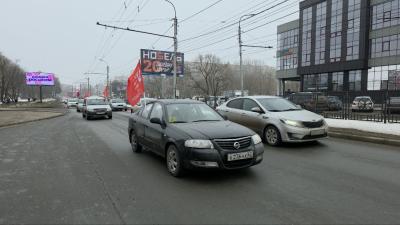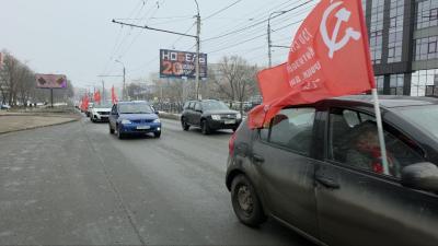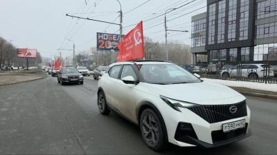 Участники автопробега на автомобилях, украшенных символикой партии и лево-патриотических сил, проехали по улицам Рязани и завершили маршрут у торгового центра «Марко Мол».