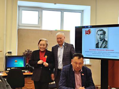 Секретари Якутского рескома КПРФ Вячеслав Куличкин, Иннокентий Васильев и председатель контрольно-ревизионной комиссии ЯРРО КПРФ Андрей Корнилов вместе с педагогическим коллективом почтили память Учителя с большой буквы. Коммунисты склонили головы перед величием педагога, который трудился в Сунтарской школе с 1929-го по 1959 год. Повод тому был самый достойный — 125-летие со дня рождения первого учителя математики, человека, чье имя произносится с особым трепетом, Иннокентия Афанасьевича Колесникова.