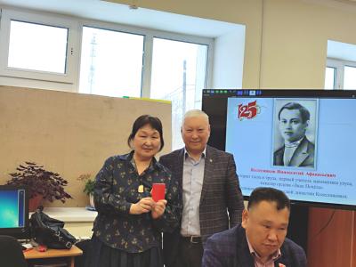 Эти награды стали знаком высочайшей признательности за их самоотверженный труд на ниве просвещения. Волнующим актом преемственности стала передача памятного дара директору школы Айаалу Тотонову. Из рук Иннокентия Васильева Айаал Валерьевич принял бесценное издание — книгу, посвященную своей матери Лие Иннокентьевне Колесниковой, чей педагогический стаж составил в этой школе удивительные 55 лет. Такой жест стал символом нерушимой связи: от первого учителя математики, через эстафету многолетнего служения, к сегодняшним хранителям традиций школы. Отец Иннокентия Васильева — Давид Дмитриевич Васильев тоже был известным педагогом-коммунистом. Он работал директором Чаппандинской школы Нюрбинского района и Сунтарской восьмилетней школы.