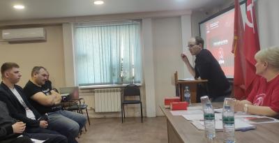 Первый секретарь Новгородского городского отделения КПРФ Андрей Михеев рассказал об аспектах агитационной и пропагандистской работы, уличных акциях, в том числе, в поддержку Народного референдума. «Не надо разговаривать об общих вещах, люди хотят конкретики – что сделали коммунисты, чего они добились. Поэтому необходимо внимательно изучать партийную прессу, в том числе, в Интернете, знать Программу Победы. И, соответственно, аргументированно объяснять избирателям позицию КПРФ», - отметил он.