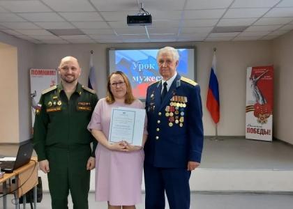 В начале мероприятия преподавателю школы интерната, члену КПРФ Мельниковой Елене Владимировне торжественно вручили благодарственное письмо от депутата Государственной Думы РФ (фракция КПРФ) Васильева Николая Ивановича. Далее в рамках урока мужества гости провели беседу с учениками 5–9 классов.