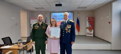 В начале мероприятия преподавателю школы интерната, члену КПРФ Мельниковой Елене Владимировне торжественно вручили благодарственное письмо от депутата Государственной Думы РФ (фракция КПРФ) Васильева Николая Ивановича. Далее в рамках урока мужества гости провели беседу с учениками 5–9 классов.