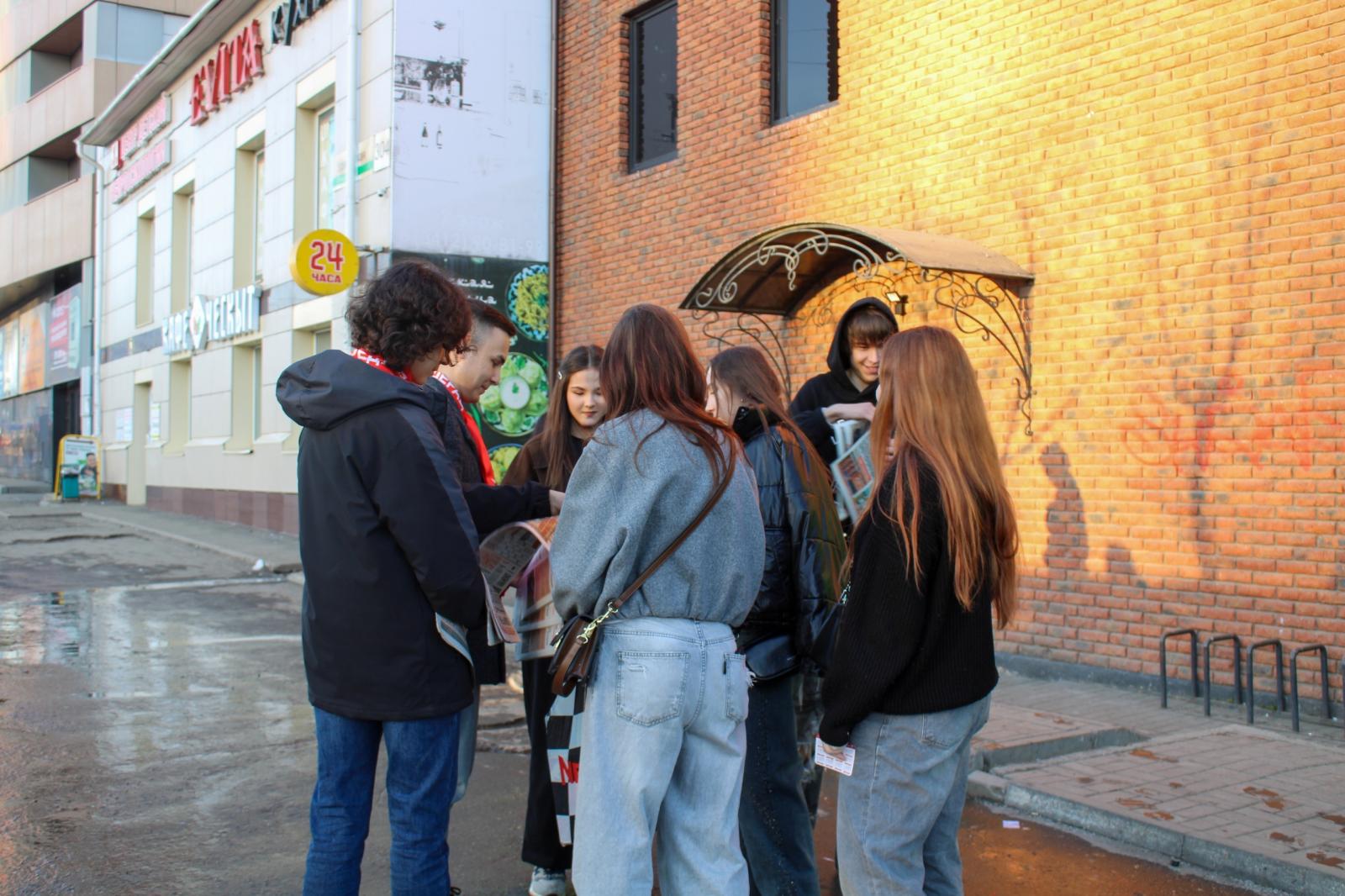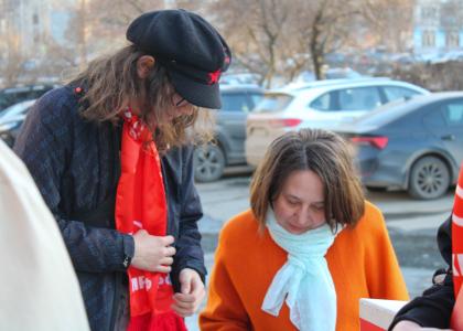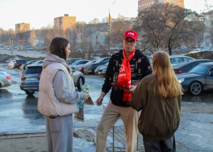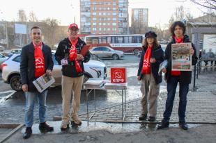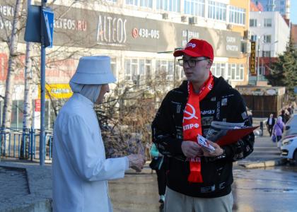 На оживлённой улице молодые коммунисты раздавали жителям свежий номер газет «Правда» и «Новое время Удмуртии». Календарики с символикой партии стали приятным дополнением к полезной информации.