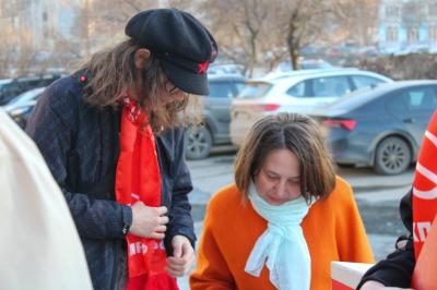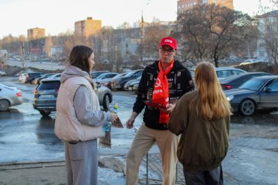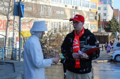 На оживлённой улице молодые коммунисты раздавали жителям свежий номер газет «Правда» и «Новое время Удмуртии». Календарики с символикой партии стали приятным дополнением к полезной информации.