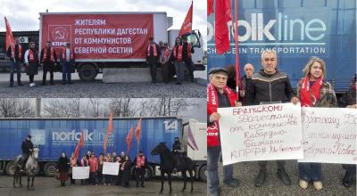 По поручению руководителя Штаба протестных действий, который возглавляет заместитель Председателя ЦК КПРФ Владимир Иванович Кашин, помощь жителям Дагестана будет оказана всеми соседними регионами Северного Кавказа. Принято решение, что из Кабардино-Балкарии, Карачаево-Черкесии, Северной Осетии и Ставропольского края будут отправлены пять многотонных машин с самым необходимым грузом — продовольствием, питьевой водой и товарами первой необходимости.