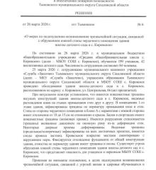 Март 2026 года мэр Тымовского района Юрий Болдов публикует решение № 6 о закрытии школы-детсада в связи с обрушением южной стены чердачного помещения, указывая на многочисленные деформации: визуальные трещины по всему фасаду, по периметру примыкания пола и стен, трещины несущих конструкций здания, видимые расхождения швов на стыках стен, кровельное покрытие также с нарушением норм. Деформированы дверные проемы, стеклопакеты, трещины обнаружены повсеместно на лестничных клетках.