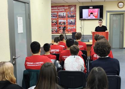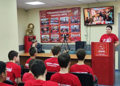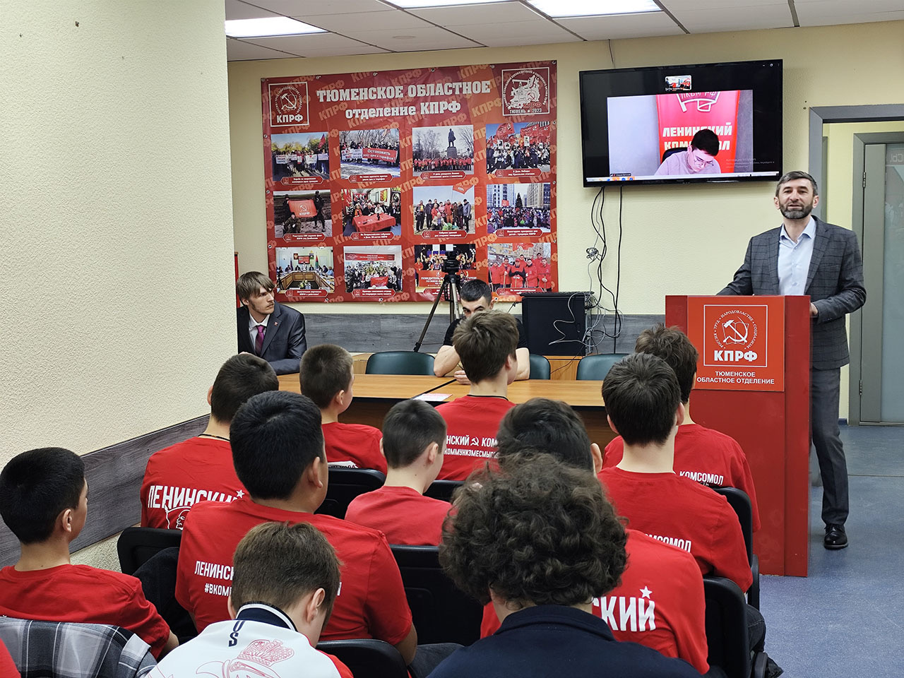 С приветственным словом к собравшимся обратилась лидер коммунистов Тюменской области Тамара Казанцева. Также в формате видеоконференции участников собрания поприветствовали комсорг по Уральскому федеральному округу Денис Курочкин и кандидат в члены ЦК Ленинского комсомола Виталий Озеров.