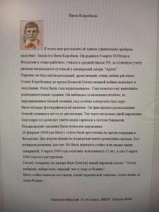 Письменные работы — эссе ребята как раз и писали о пионерах-героях: Вале Котике, Зине Портновой, Володе Дубинине и многих других. Надо отметить, что ребята с интересом изучали биографии пионеров, их подвиги. Можно сказать, что это было их первое историческое исследование, оставившее след в их сердцах и ставшее жизненным примером беззаветной любви и служения Родине.
