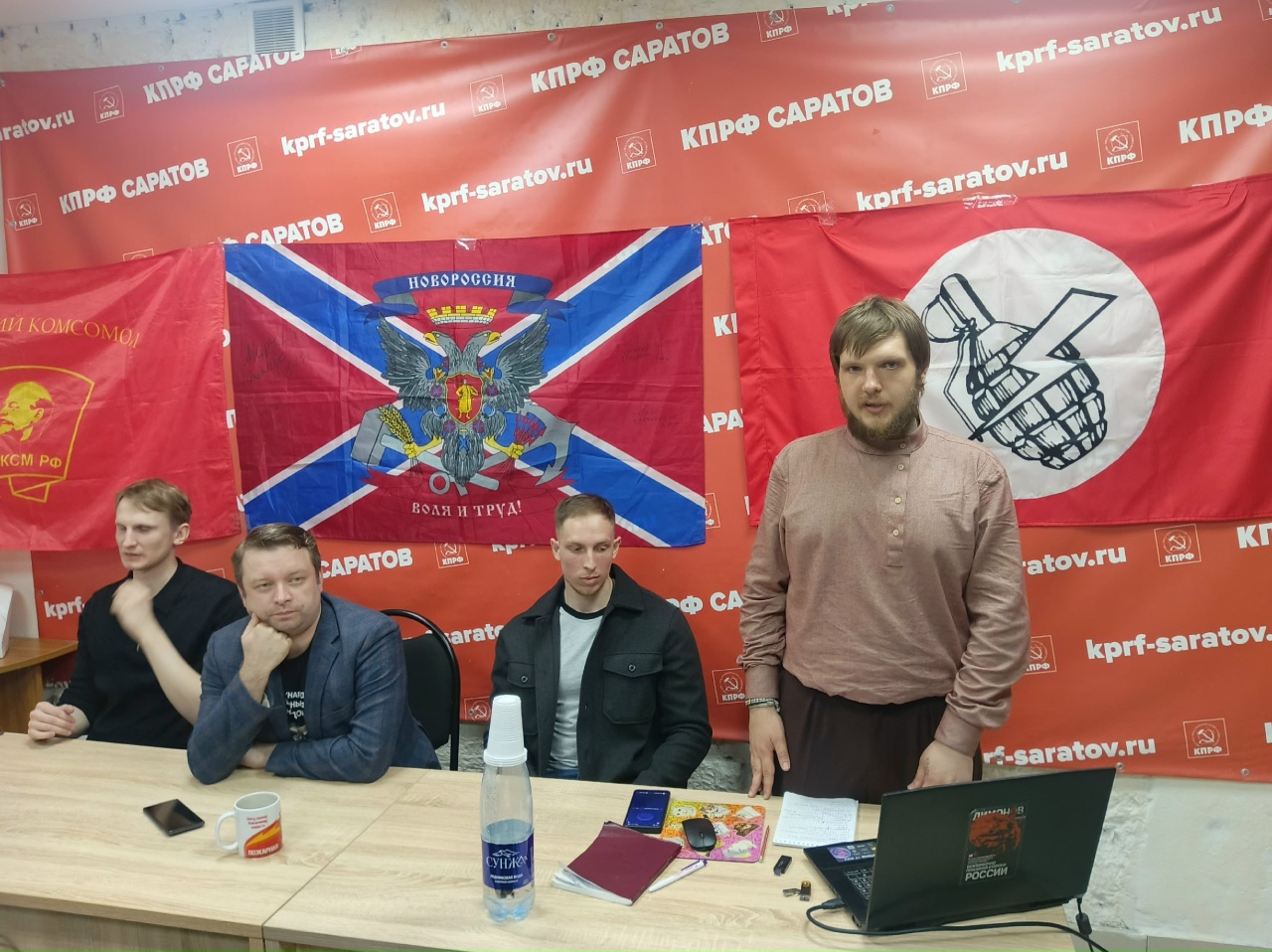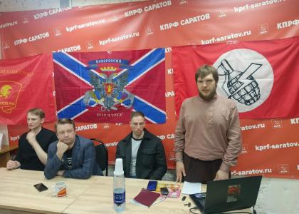 Представитель Саратовского горкома КПРФ Андрей БАЖЕНОВ осветил участие коммунистов в период народного ополчения, фрагменты из истории помощи КПРФ и ЛКСМ РФ Республикам Донбасса ещё до того момента, как это стало популярно у нынешней власти, а также рассказал о материалах КПРФ, в которых поднимаются вопросы патриотизма, Русской культуры и Русского мира.
